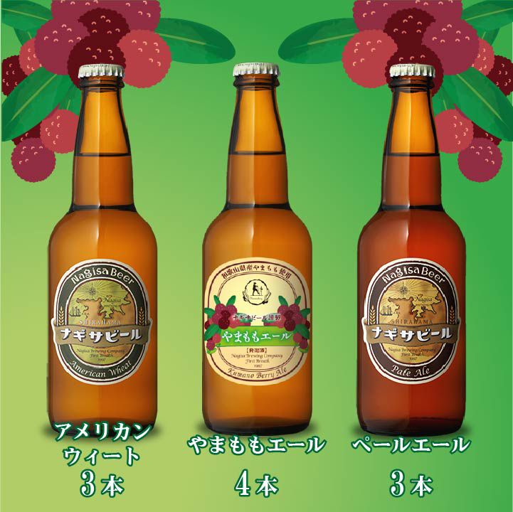 ナギサビールのフラッグシップ(アメリカンウィートとペールエール)に、やまももエールを加えた、飲み比べ10本セットをご用意しました。